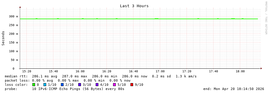 traceroute to 2402:1f00:8400::2:0:19c (2402:1f00:8400::2:0:19c), 30 hops max, 80 byte packets - Generated at 2026-04-20 18:00:01