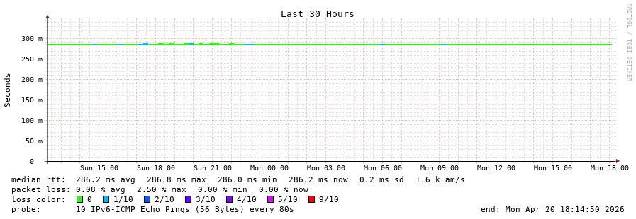 22 > 2402:4480:8002:1000::2:d (2402:4480:8002:1000::2:d) [AS174] 287.343ms 287.295ms 287.605ms